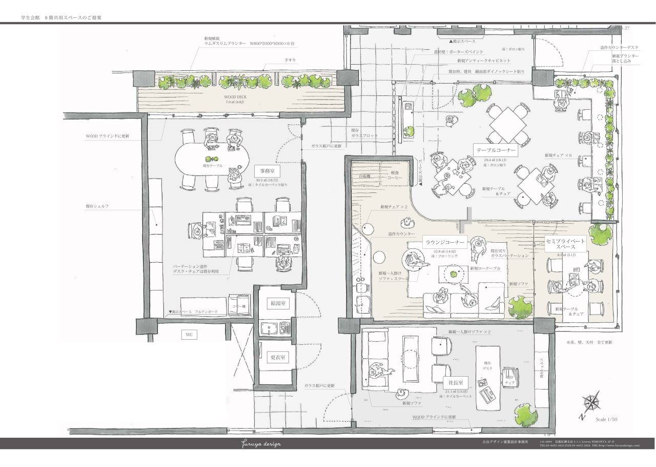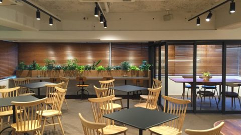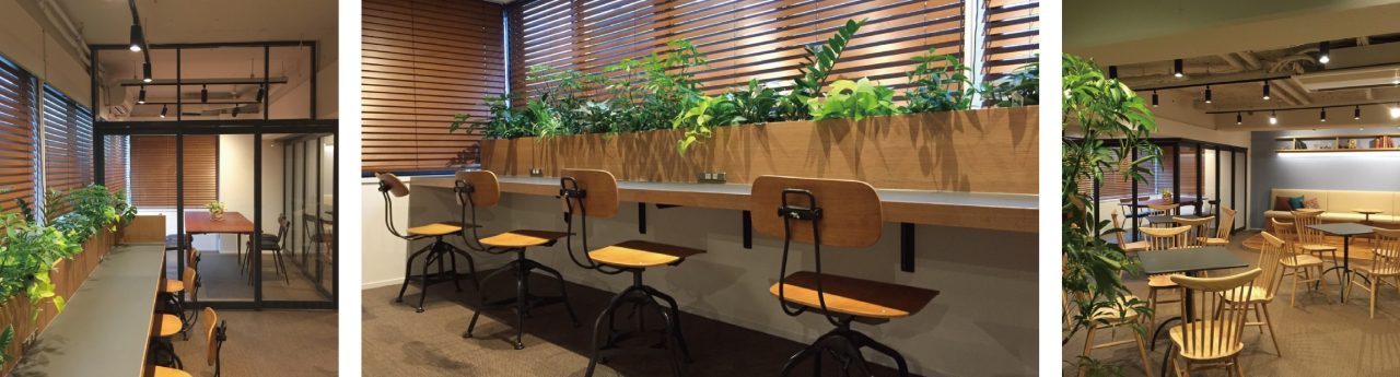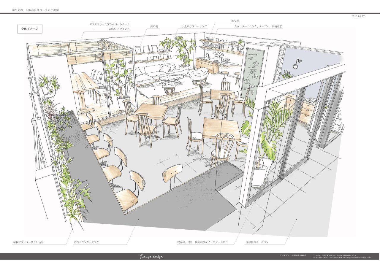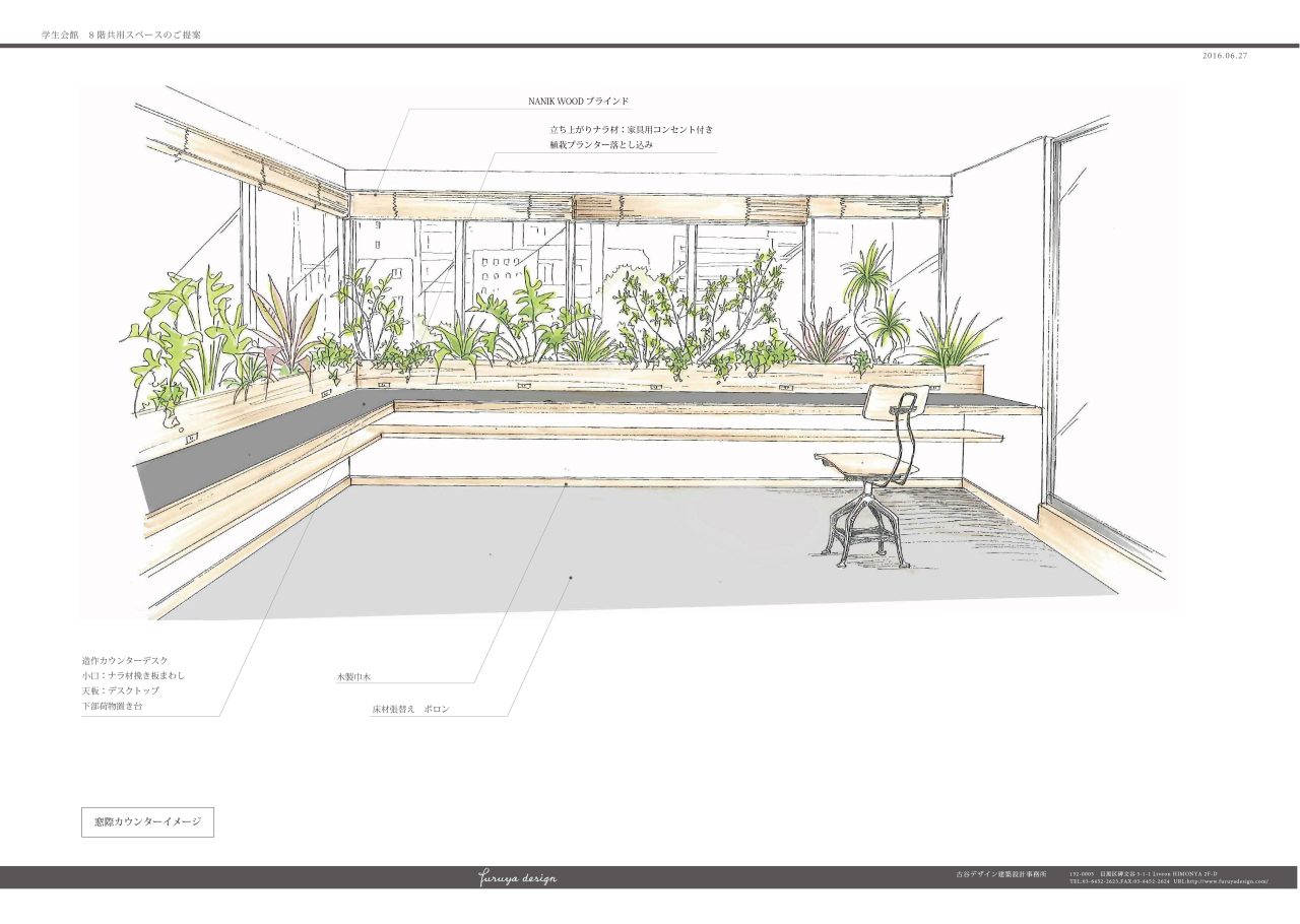学生専用集合住宅内の余剰スペースを活用し、入居する学生たちが自分の個室以外に時間を過ごすことができる場所をつくり出した。みどりと落ち着いた素材で構成されたスペースでは、イベントの趣に応じて大きく利用することも、建具を閉じて個室として利用することも可能。景色の抜ける窓際にカウンターを設け、自習ができるカフェスペースとしても機能する。